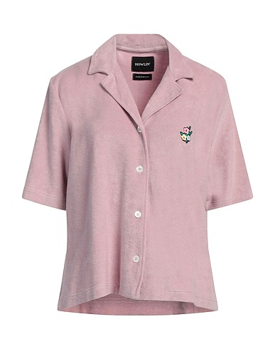 overshirt, terrycloth, solid color with appliqués, embroidered, camp collar, short sleeves, button fastenings, machine wash, do not bleach, do not tumble dry