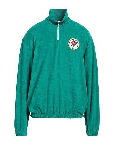 terrycloth, solid color with appliqués, brand logo, embellished, half-zip neckline, long sleeves, pockets, machine wash, do not bleach, do not tumble dry
