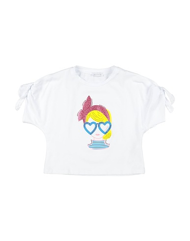 jersey, solid color with print, crystals, glittered, crewneck, short sleeves, stretch, hand wash or dry clean, do not bleach, tumble dry