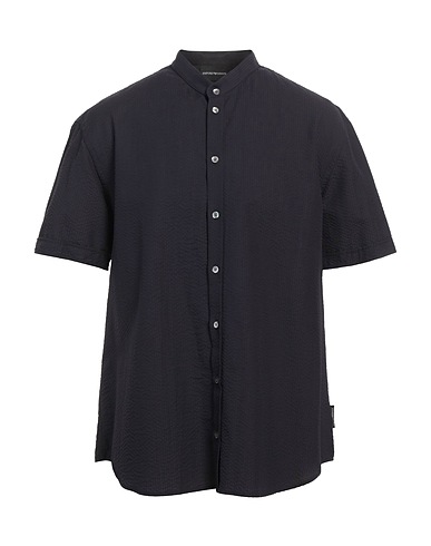 regular-fit shirt, seersucker, solid color, brand logo, mandarin collar, short sleeves, button fastenings, machine wash or dry clean, do not bleach, do not tumble dry
