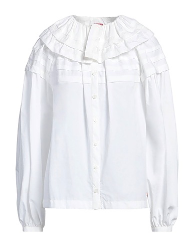 ruched shirt, woven, solid color, ruffles, brand logo, crewneck, long sleeves, button fastenings, hand wash or dry clean, do not bleach, do not tumble dry