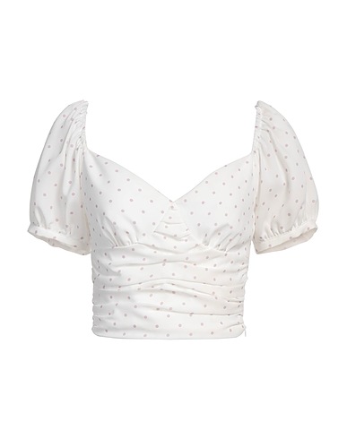 crop top, crepe, polka-dot, gathered, brand logo, off-the-shoulder, short sleeves, fully lined, zipper fastening, hand wash, do not bleach, do not tumble dry
