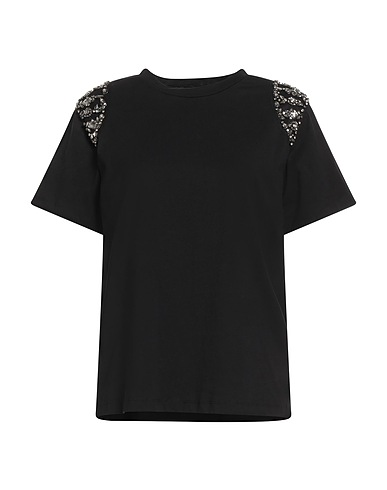t-shirt, jersey, solid color with appliqués, crystals, brand logo, crewneck, short sleeves, hand wash, do not bleach, do not tumble dry