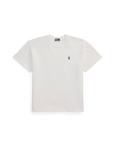 basic tee, piqué, solid color, embroidered logo, crewneck, short sleeves, machine wash or dry clean, do not tumble dry