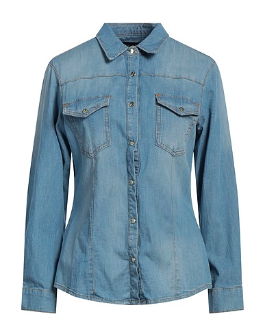 chambray, denim effect, solid color, brand logo, light wash, classic collar, long sleeves, snap fastenings, two chest pockets, stretch, machine wash, do not bleach, tumble dry
