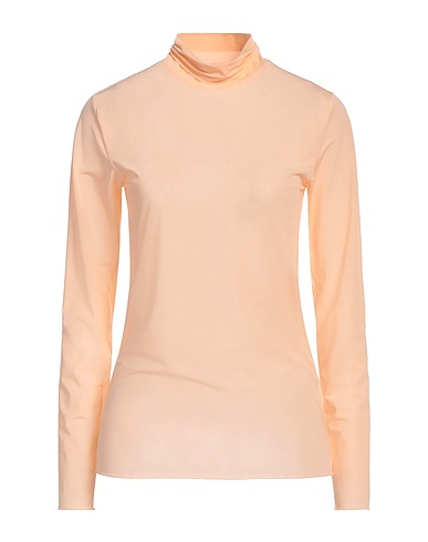 t-shirt, synthetic jersey, solid color, no appliqués, turtleneck, long sleeves, stretch, dry clean, do not bleach, do not tumble dry, this brand runs large