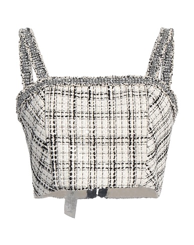 crop top, tweed, metallic, multicolor, sequins, brand logo, square neckline, sleeveless, hook fastenings, hand wash or dry clean, do not bleach, do not tumble dry