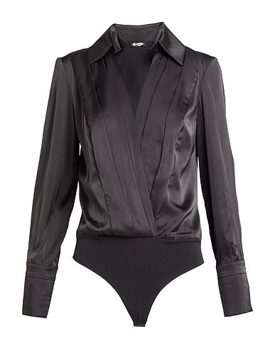 satin, solid color, no appliqués, camp collar, long sleeves, buttoned cuffs, stretch, hand wash or dry clean, do not bleach, do not tumble dry