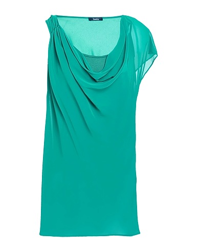 top, chiffon, solid color, no appliqués, crewneck, sleeveless, detachable camisole to line, hand wash or dry clean, do not bleach, do not tumble dry