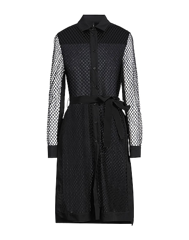 shirt dress, woven, mesh fabric, solid color, belt, classic collar, long sleeves, button fastenings, side splits, stretch, hand wash or dry clean, do not bleach, do not tumble dry, power dressing meets elegance in this chic office outfit that will inspire confidence every day