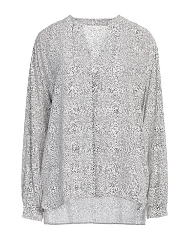 top, woven, two-tone, no appliqués, mandarin collar, long sleeves, buttoned cuffs, dry clean, do not bleach, do not tumble dry