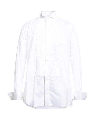 tuxedo shirt, poplin, solid color, no appliqués, tuxedo collar, long sleeves, cufflinks cuffs, concealed button fastenings, machine wash or dry clean, do not bleach, do not tumble dry