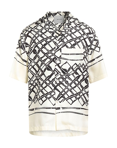 regular-fit shirt, satin, two-tone, no appliqués, camp collar, short sleeves, button fastenings, one chest pocket, dry clean, do not bleach, do not tumble dry