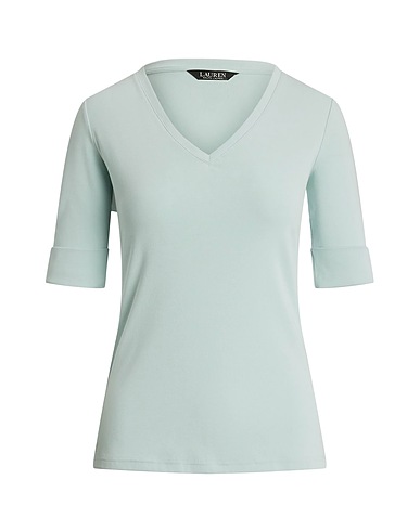STRETCH COTTON ELBOW-SLEEVE V-NECK TEE