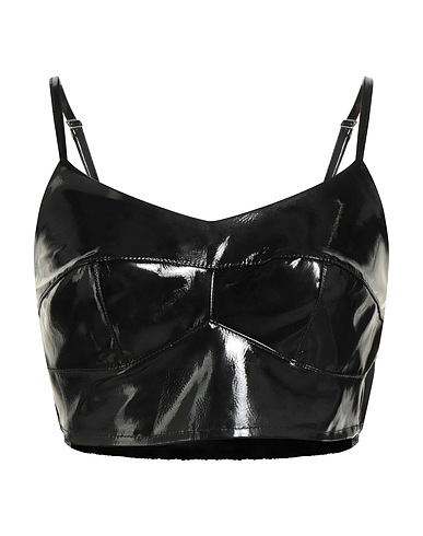 crop top, coated fabric, solid color with appliqués, shirred, scoop