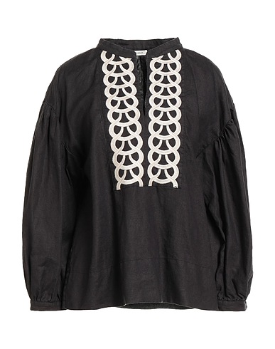 bohemian blouse, woven, solid color with appliqués, embroidered, v-neck, long sleeves, machine wash or dry clean, do not bleach, do not tumble dry, this brand runs large