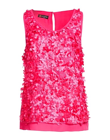 top, crepe, solid color with appliqués, floral appliqués, cutout, scoop