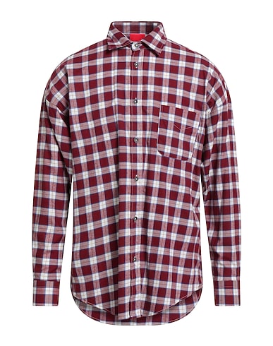 long shirt, flannel, checked, print, classic collar, long sleeves, buttoned cuffs, button fastenings, one chest pocket, machine wash or dry clean, do not bleach, do not tumble dry