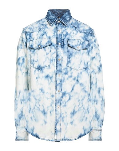 denim, tie-dyed, brand logo, light wash, classic collar, long sleeves, buttoned cuffs, two chest pockets, contains non-textile parts of animal origin, machine wash or dry clean, do not bleach, do not tumble dry