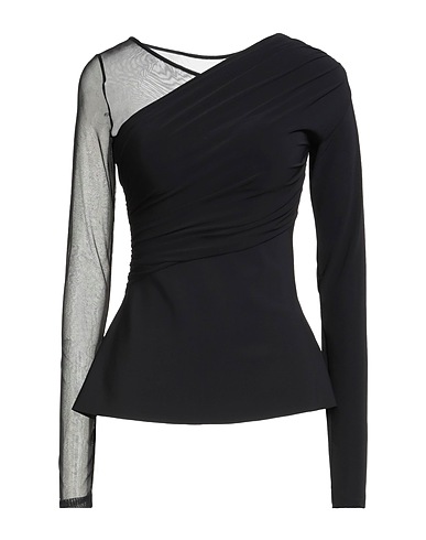top, scuba, tulle, solid color, gathered, scoop