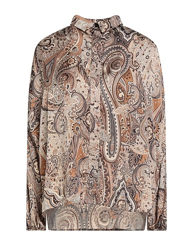 shirt, satin, paisley-print, gathered, classic collar, long sleeves, elasticated cuffs, button fastenings, machine wash or dry clean, do not bleach, do not tumble dry