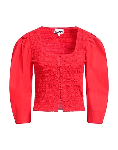 shirt, woven, solid color, gathered, v-neck, 3/4 length sleeves, puffed sleeves, button fastenings, machine wash, do not bleach, do not tumble dry