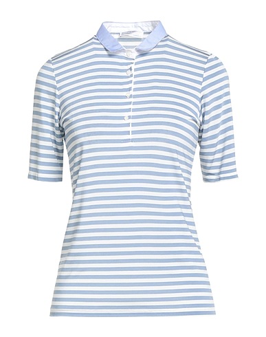synthetic jersey, striped, embellished, polo collar, short sleeves, stretch, hand wash or dry clean, do not bleach, do not tumble dry
