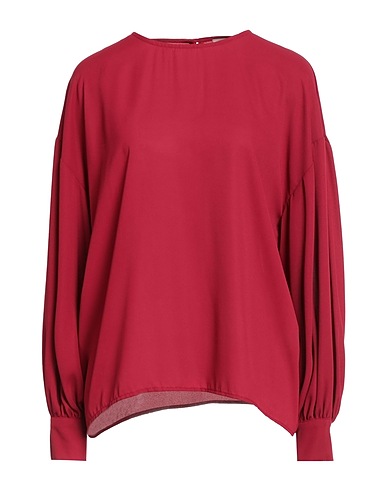 top, crepe, solid color, no appliqués, crewneck, long sleeves, buttoned cuffs, machine wash or dry clean, do not bleach, do not tumble dry