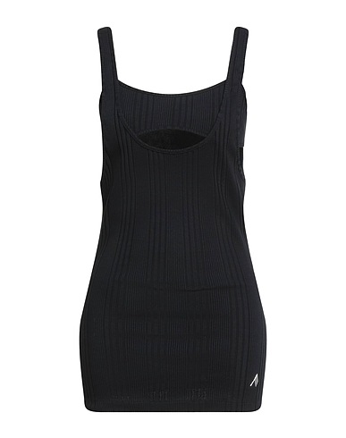 neckline, sleeveless, built-in shelf bra, machine wash, do not bleach, do not tumble dry