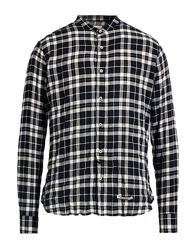 slim-fit shirt, poplin, tartan pattern, no appliqués, mandarin collar, long sleeves, buttoned cuffs, button fastenings, machine wash or dry clean, do not bleach, do not tumble dry