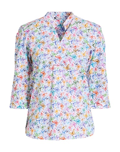 top, woven, multicolor, no appliqués, mandarin collar, 3/4 length sleeves, concealed button fastenings, machine wash or dry clean, do not bleach, do not tumble dry, this brand runs small