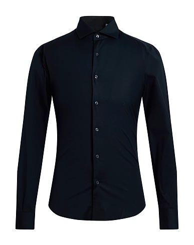 slim-fit shirt, woven, solid color, no appliqués, classic collar, long sleeves, buttoned cuffs, button fastenings, stretchy fabric, machine wash, do not bleach, do not tumble dry