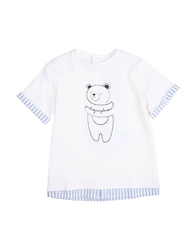 jersey, solid color with appliqués, piped trims, print, crewneck, short sleeves, snap fastenings, machine wash, do not bleach, do not tumble dry