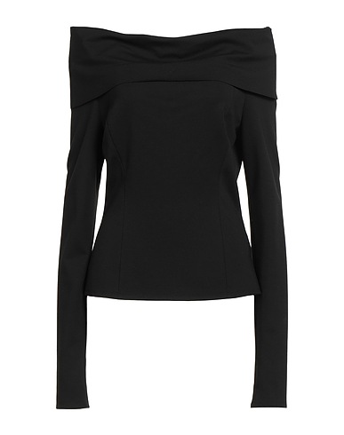 top, jersey, stretchy fabric, solid color, no appliqués, draped neckline, long sleeves, machine wash or dry clean, do not bleach, do not tumble dry