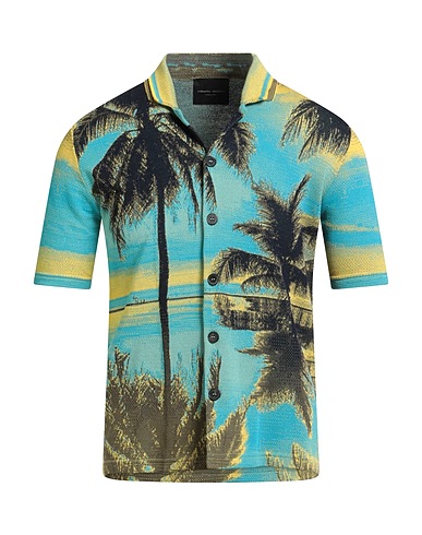 regular-fit shirt, jersey, hawaiian-print, no appliqués, camp collar, short sleeves, button fastenings, hand wash or dry clean, do not bleach, do not tumble dry, this brand runs large