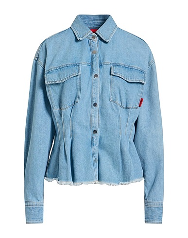 denim, faded, solid color, darts, light wash, classic collar, long sleeves, snap-fastening cuffs, snap fastenings, two chest pockets, machine wash, do not bleach, do not tumble dry