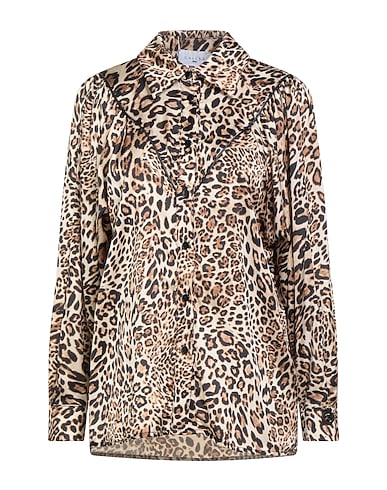 shirt, satin, leopard-print, synthetic material trims, gathered, classic collar, long sleeves, buttoned cuffs, button fastenings, machine wash or dry clean, do not bleach, do not tumble dry