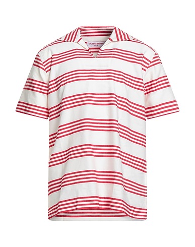 regular-fit shirt, woven, striped, brand logo, v-neck, short sleeves, side slit hemline, machine wash, do not bleach, do not tumble dry
