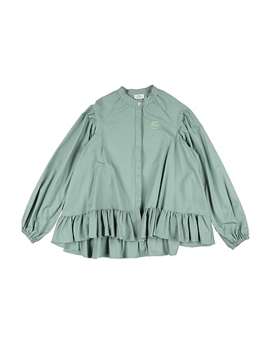 twill, solid color, embroidered logo, mandarin collar, long sleeves, elasticated cuffs, button fastenings, machine wash or dry clean, do not bleach, do not tumble dry