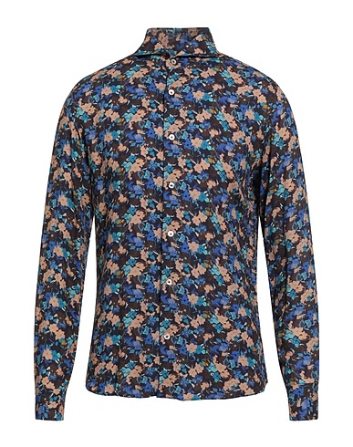 slim-fit shirt, flannel, floral-print, no appliqués, classic collar, long sleeves, buttoned cuffs, button fastenings, hand wash or dry clean, do not bleach, do not tumble dry