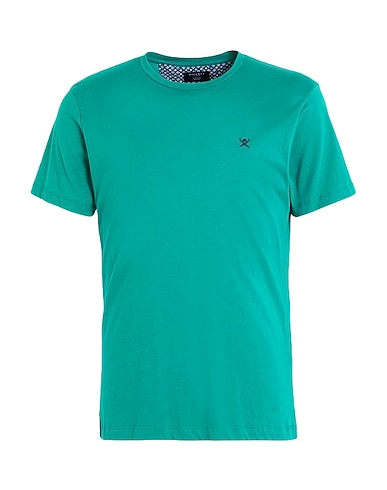 basic tee, jersey, solid color, embroidered logo, crewneck, short sleeves, machine wash or dry clean, do not bleach, do not tumble dry, this brand runs large