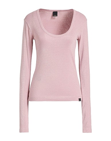basic tee, ribbed jersey, metallic, stretchy fabric, solid color, brand logo, scoop