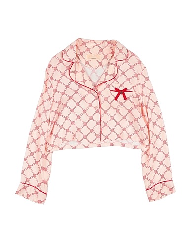 crepe, logo-print, satin trims, bow-detailed, grosgrain trims, camp collar, long sleeves, button fastenings, one chest pocket, hand wash or dry clean, do not bleach, do not tumble dry, this brand runs small