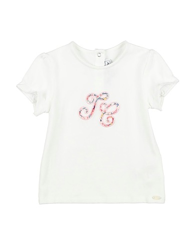 jersey, stretchy fabric, solid color with appliqués, embroidered logo, crewneck, short sleeves, gathered sleeves, snap fastenings, machine wash, do not bleach, do not tumble dry