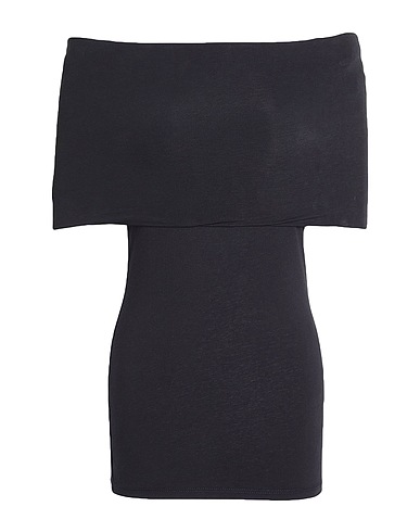 off-the-shoulder top, jersey, stretchy fabric, solid color, no appliqués, short sleeves, machine wash or dry clean, do not bleach, do not tumble dry