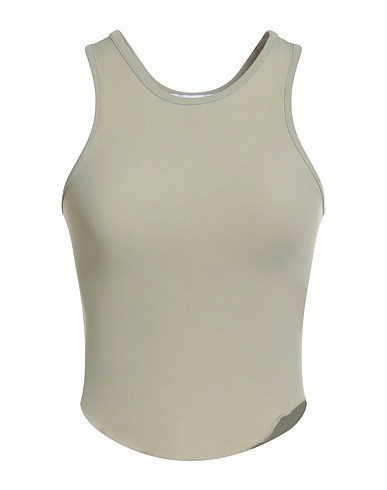 top, synthetic jersey, stretchy fabric, solid color, no appliqués, crewneck, sleeveless, machine wash, do not bleach, do not tumble dry