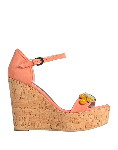 sandals, suede, solid color with appliqués, embellished, buckle-fastening ankle strap, round toe, wedge, rubber sole, leather lining, contains non-textile parts of animal origin