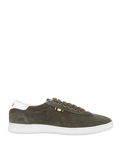 low-top sneakers, suede, solid color, brand logo, leather lining, lace-up, round toe, rubber sole, contains non-textile parts of animal origin