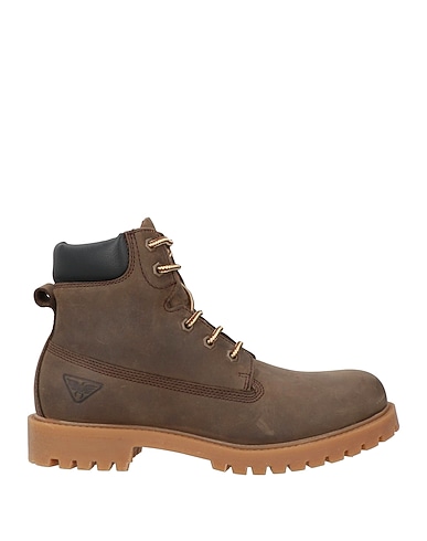 combat boots, leather, solid color, brand logo, fabric inner, lace-up, round toe, flat, lug sole, contains non-textile parts of animal origin