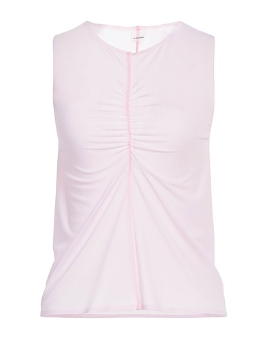 jersey, gathered, solid color, crewneck, sleeveless, no pockets, stretch, do not dry clean, do not tumble dry, do not bleach, top